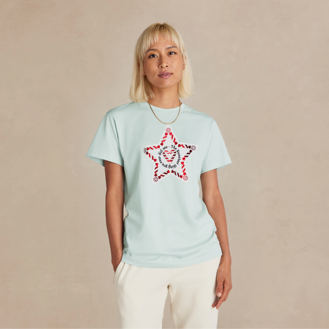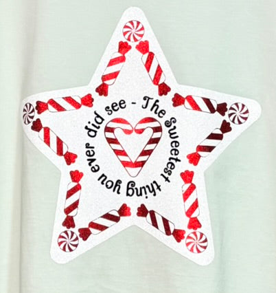 The glistening, fresh snowfall finish is cut from Siser's white, glitter vinyl. The perfect sparkle with no falling flakes. The words have the feel of velvety soft Flock vinyl, and all is set ashine with a brilliant red vinyl from Siser's metallic collection.